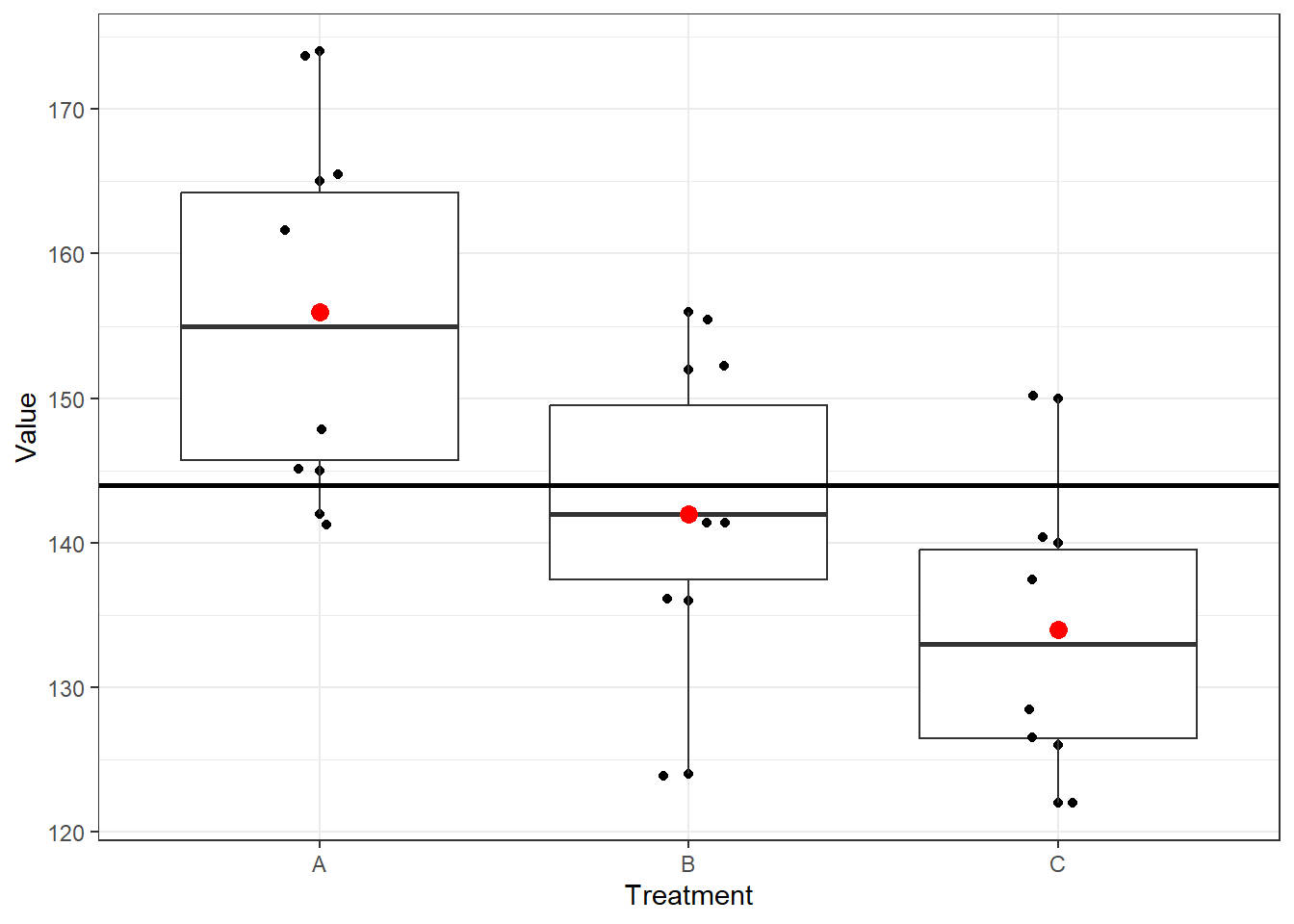 Now we see how the “Values” are distributed for 3 different Treatments.
